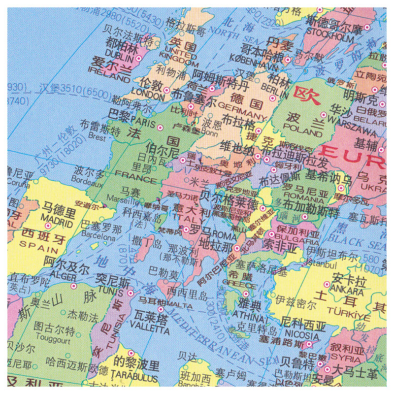 折叠地图贴图 饰画地图 世界地图 装 单面可贴墙 袋装 87cm 106 新版 图系列挂图 国家版