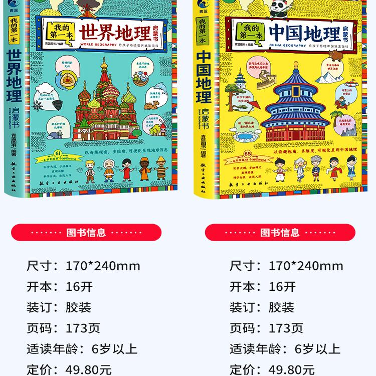 我 课外书小学生课外阅读书籍趣味科普 第一本地理启蒙书全套2册中国世界地理百科全书儿童读物6岁以上绘本一二三四五六年级