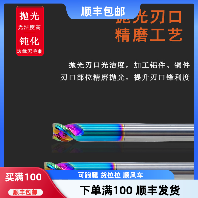 短刃铣刀铝用七彩U型槽刃短铣刀无毛刺无刀痕3刃高光短刃刀刃短刀
