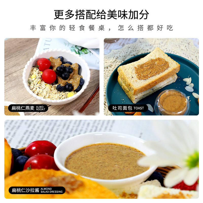 杏仁酱纯扁桃仁酱涂抹面包吐司巴旦木烘焙营养早餐坚果酱花生酱