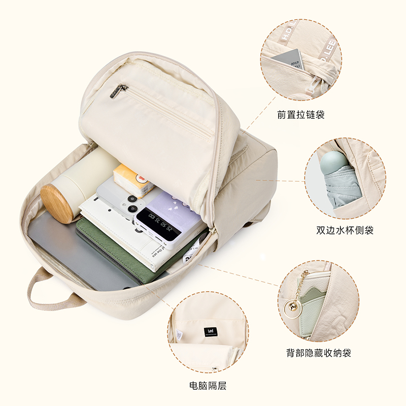 Lee2025新款 休闲出行通勤旅行包轻便小背包电脑包 双肩包女生时尚