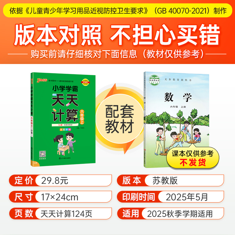 2025秋小学学霸天天计算六年级上册数学苏教版 PASS绿卡图书小学数学天天练习册6年级六上数学教材同步计算达人计算小能手课堂作业
