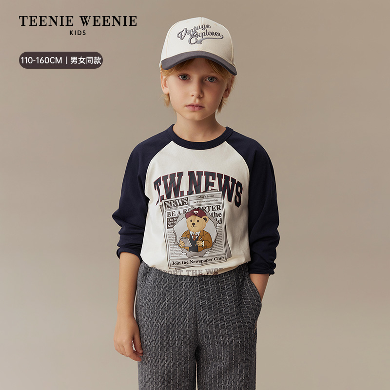 男女童休闲撞色插肩长袖 25年新款 T恤 Kids小熊童装 TeenieWeenie