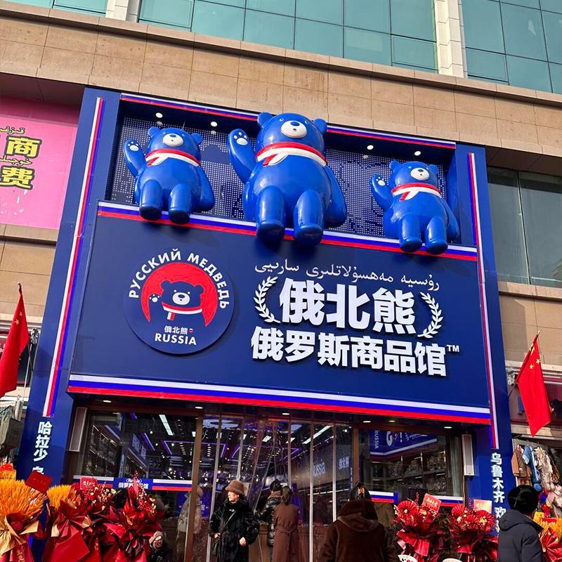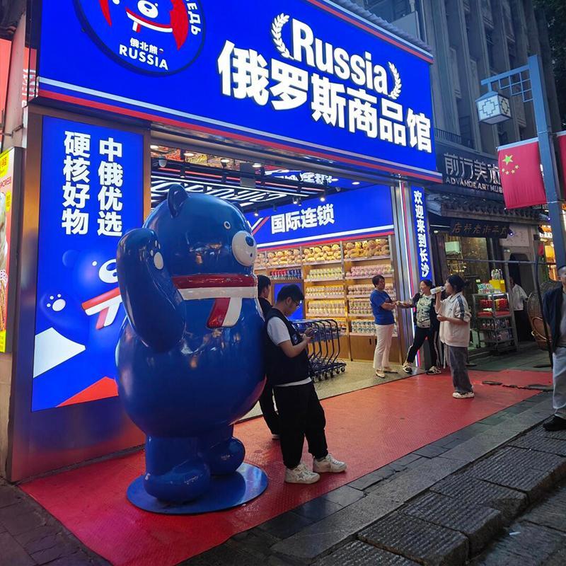 大型玻璃钢俄比熊仿真彩绘俄罗斯商品馆套娃雕塑俄式 餐厅商场摆件