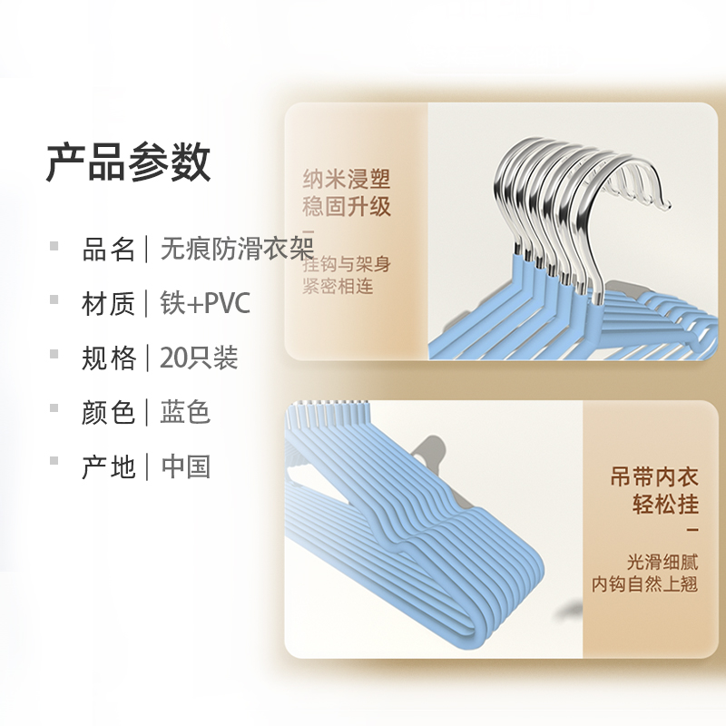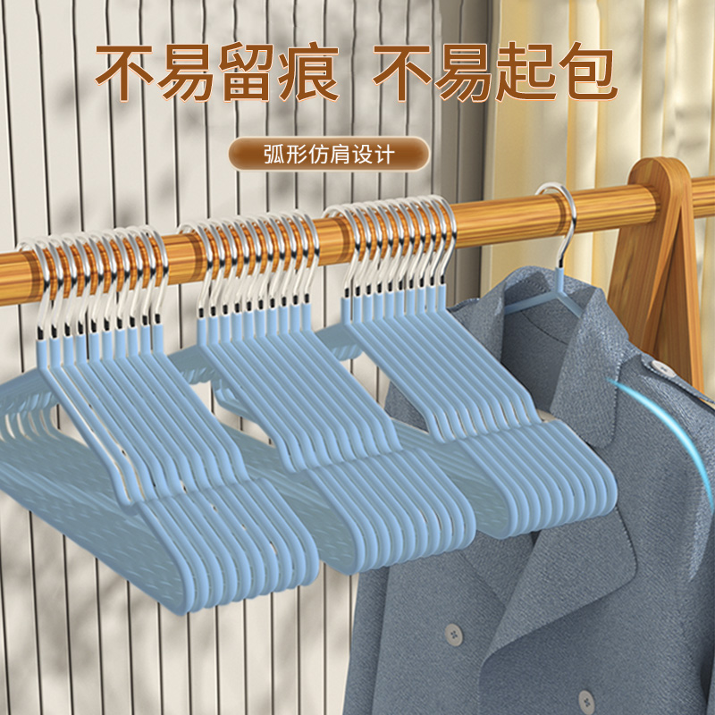 家用无痕简约衣架金属成人防滑带凹槽浸塑衣架 20只装