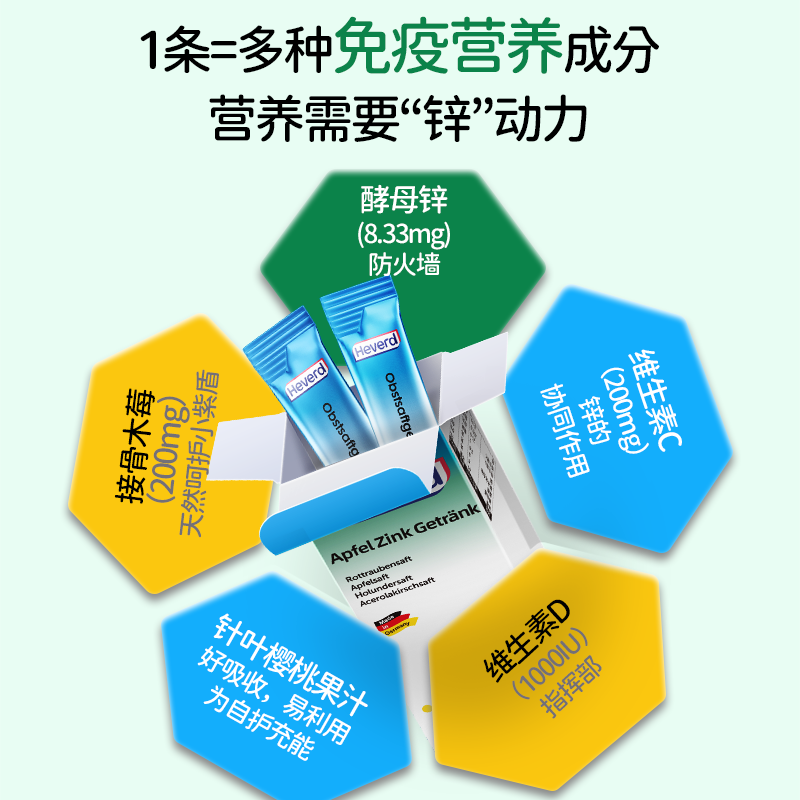赫维德Heverd德国进口酵母锌婴幼儿儿童锌滴剂维生素锌接骨木莓vc