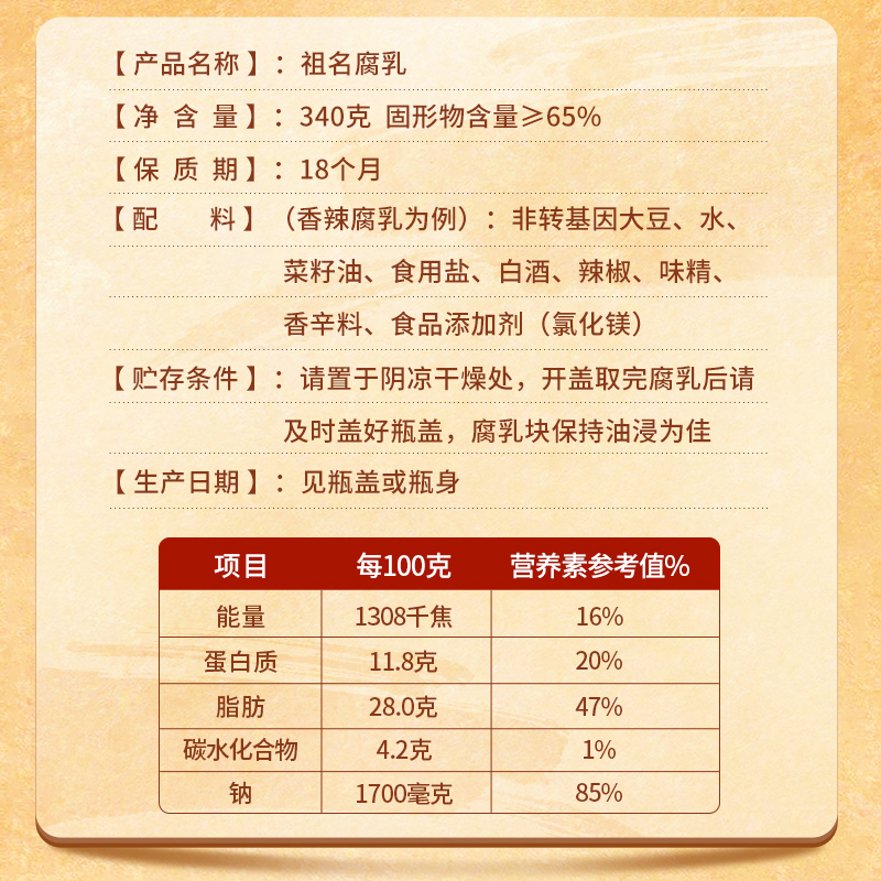 祖名香辣麻辣油腐乳340g 2瓶豆腐乳佐餐火锅蘸料调味霉特产下饭菜