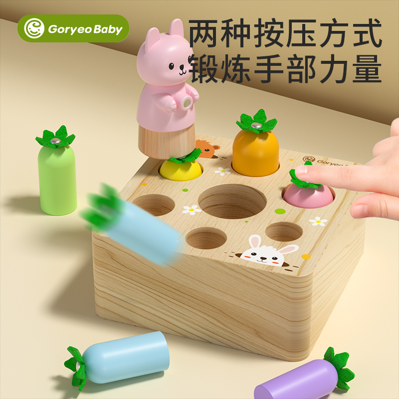 儿童积木手指按压磁吸兔萝卜游戏棒宝宝益智桌面木质弹跳玩具早教