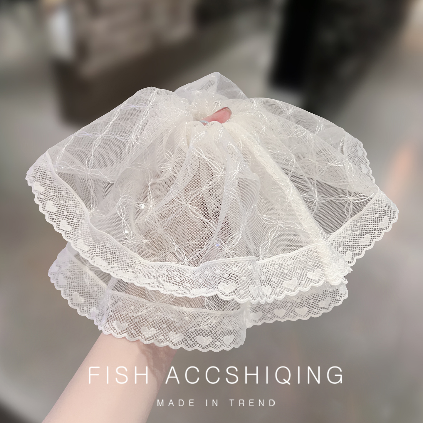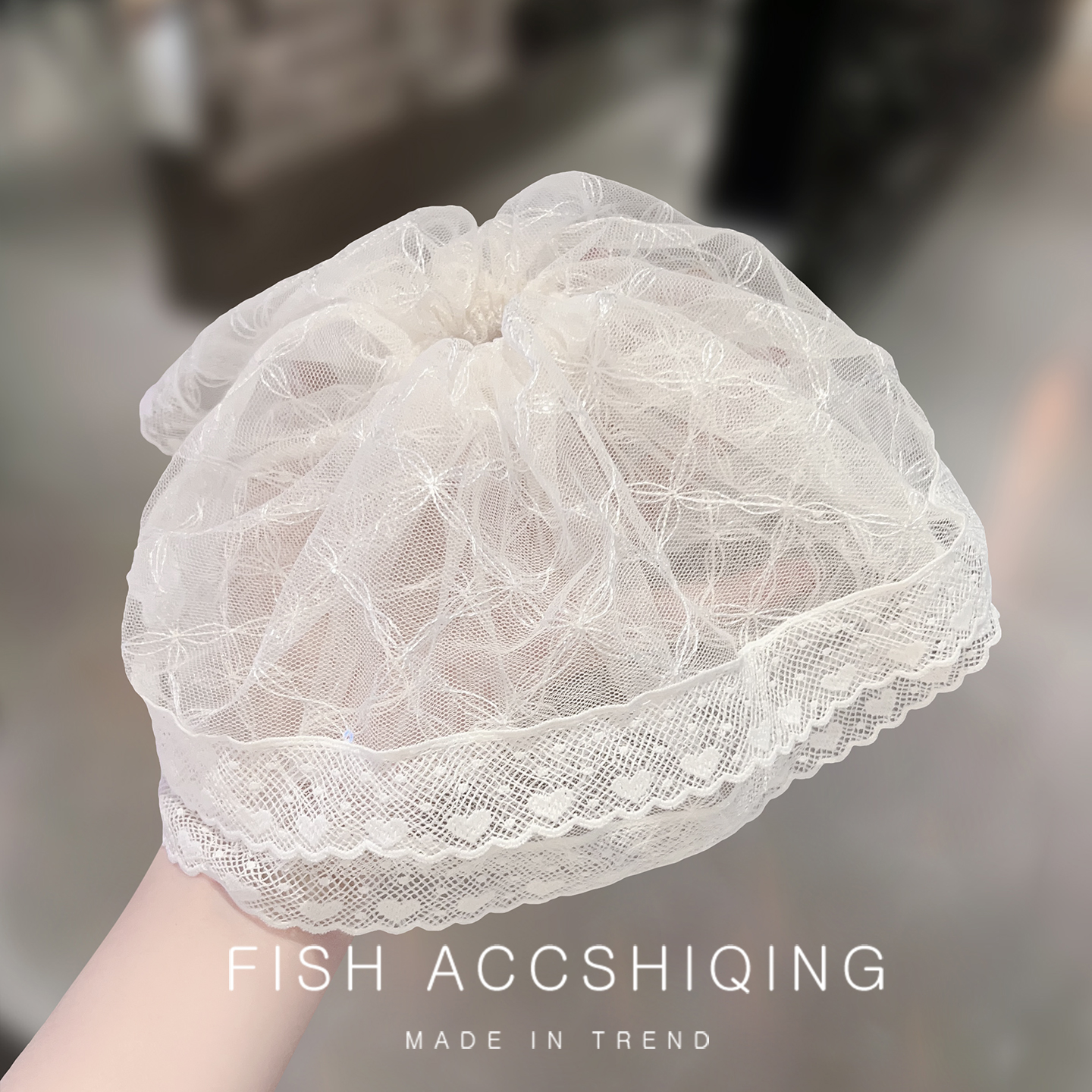 超大温柔花边蕾丝发圈女高级感小众百搭头花时尚 低马尾发绳发饰