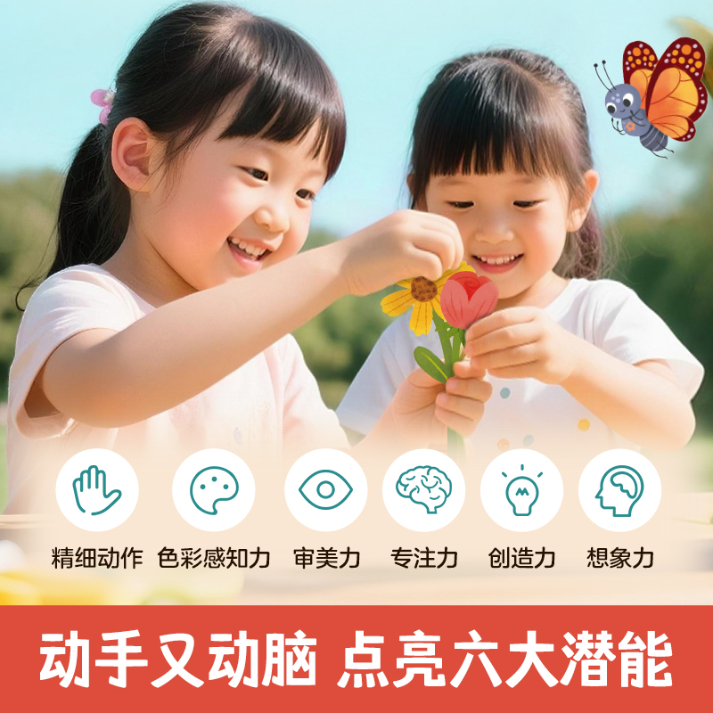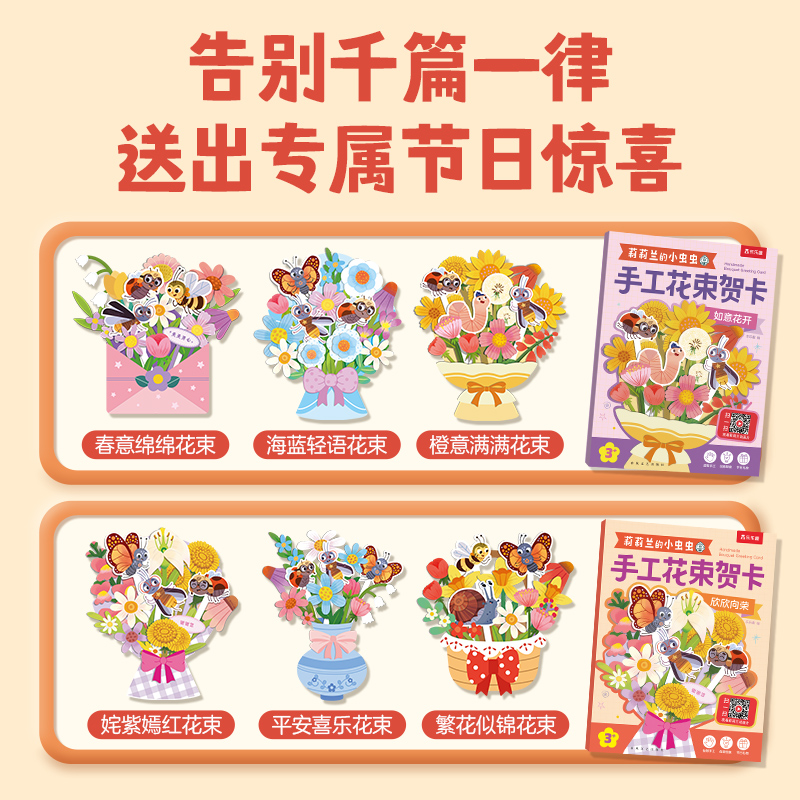 莉莉兰 6岁教师节母亲节父亲节长辈生日礼物 小虫虫自然启蒙手工花束DIY乐乐趣早教绘本0到3岁宝宝亲子手工册手工花束2册0