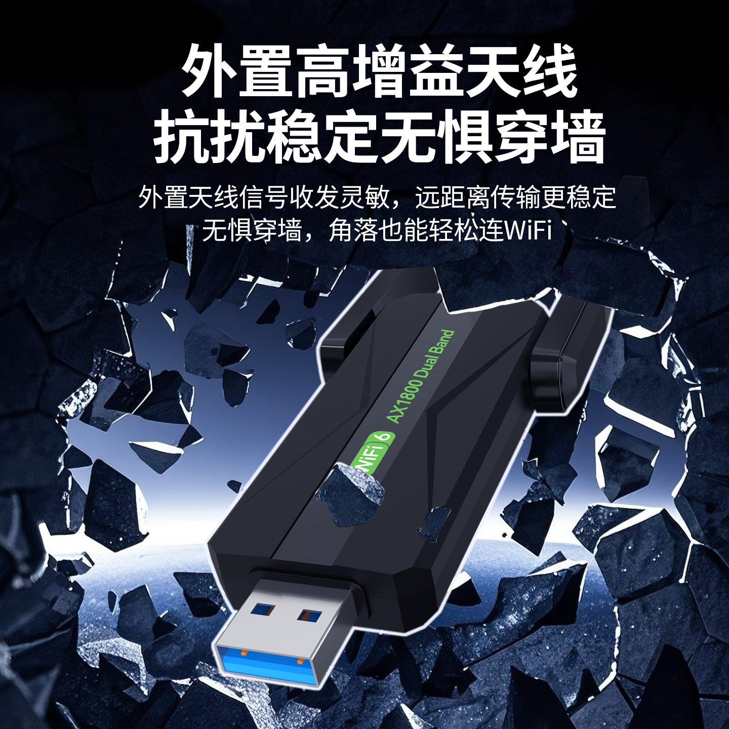 免驱动WiFi6无线网卡台式 机笔记本外置USB3.0电竞网卡千兆5G双频1800兆 电脑无线wifi接收器台式