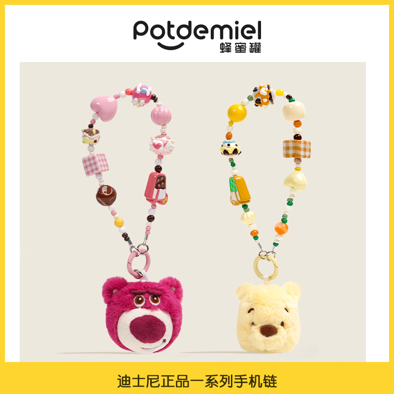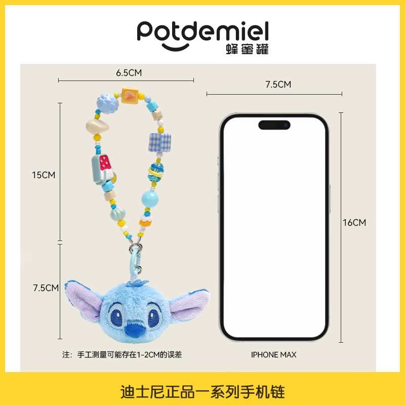迪士尼正版 potdemiel蜂蜜罐史迪奇可爱毛绒公仔手机链手腕挂绳女