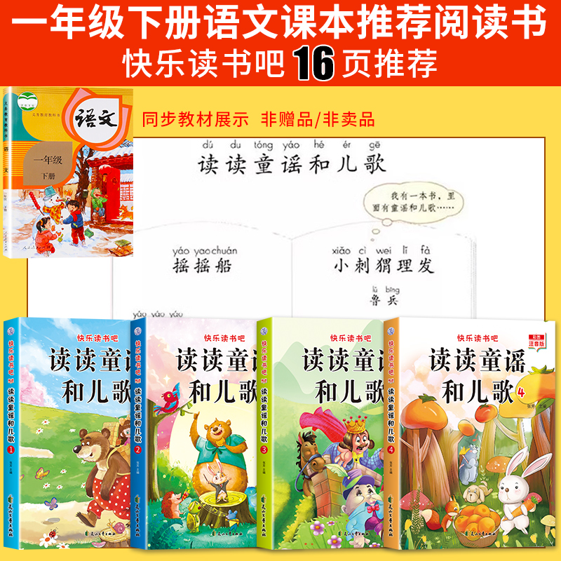 小学快乐读书吧推荐 书籍注音版 和大人一起读上册书目带拼音儿童绘本老 读读童谣和儿歌一年级下册阅读课外书必读正版 YSYS全套4册