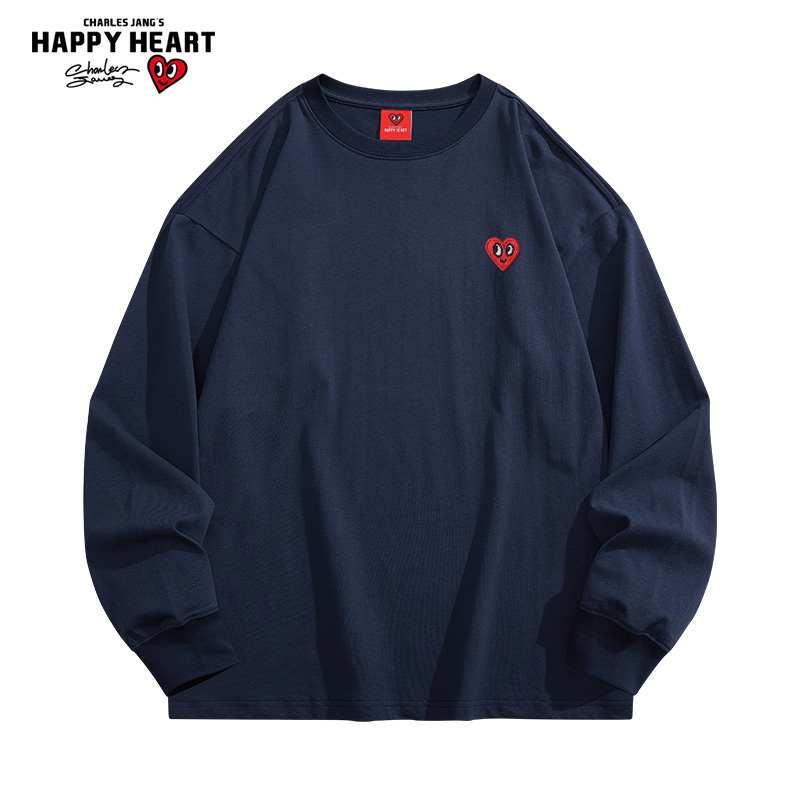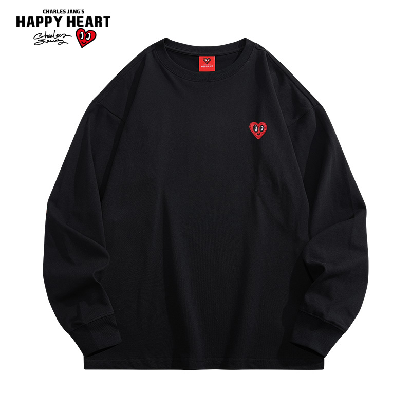 圆领内搭打底衫 t男春秋季 纯色cleanfit爱心刺绣长袖 查尔斯桃心