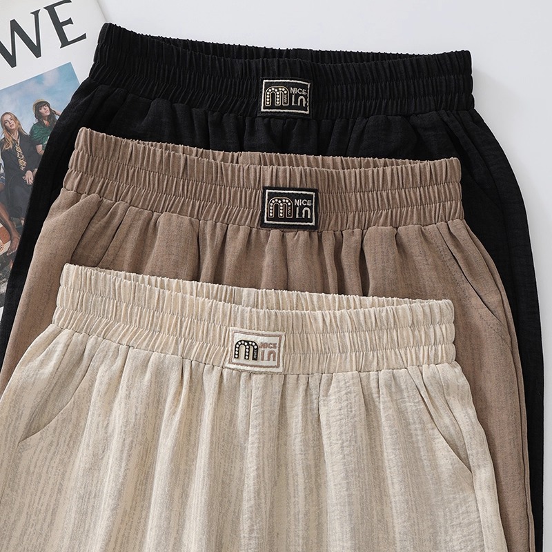 子夏季 宽松休闲奶奶裤 中老年人高腰阔腿裤 女裤 九分垂感薄款 妈妈裤