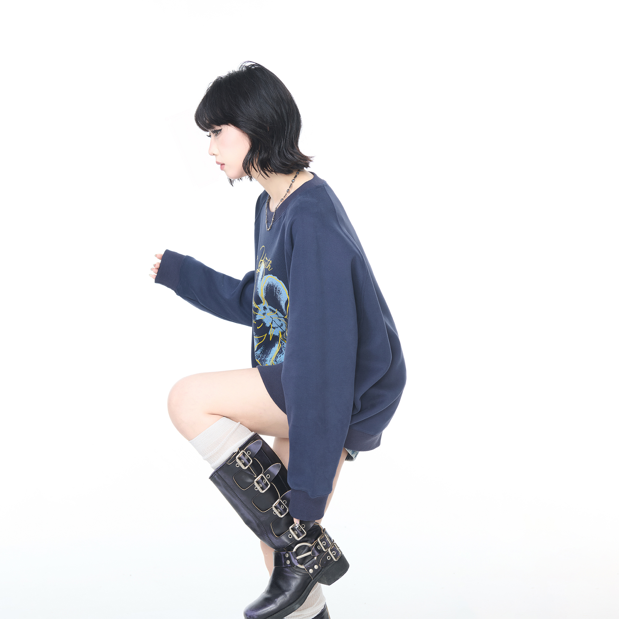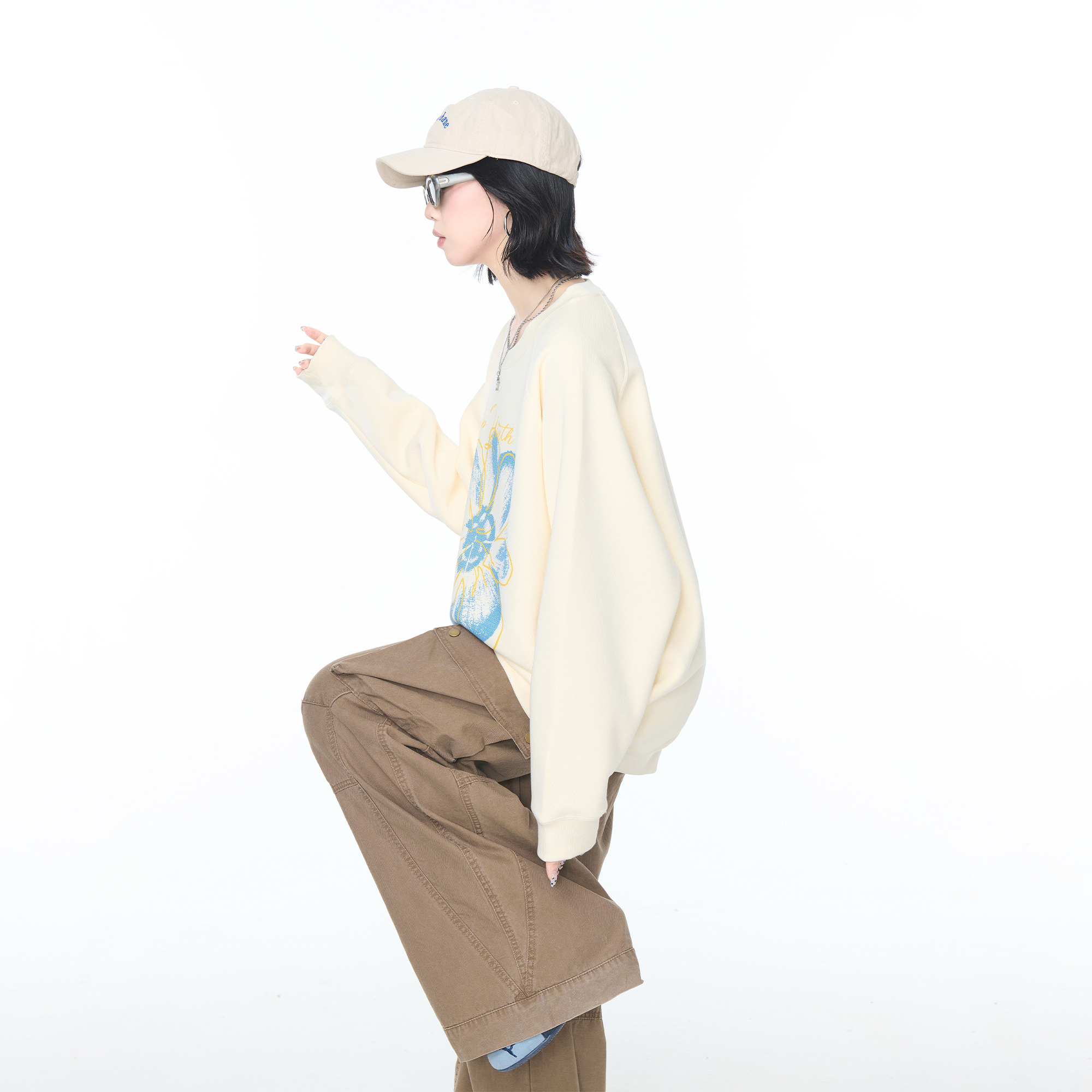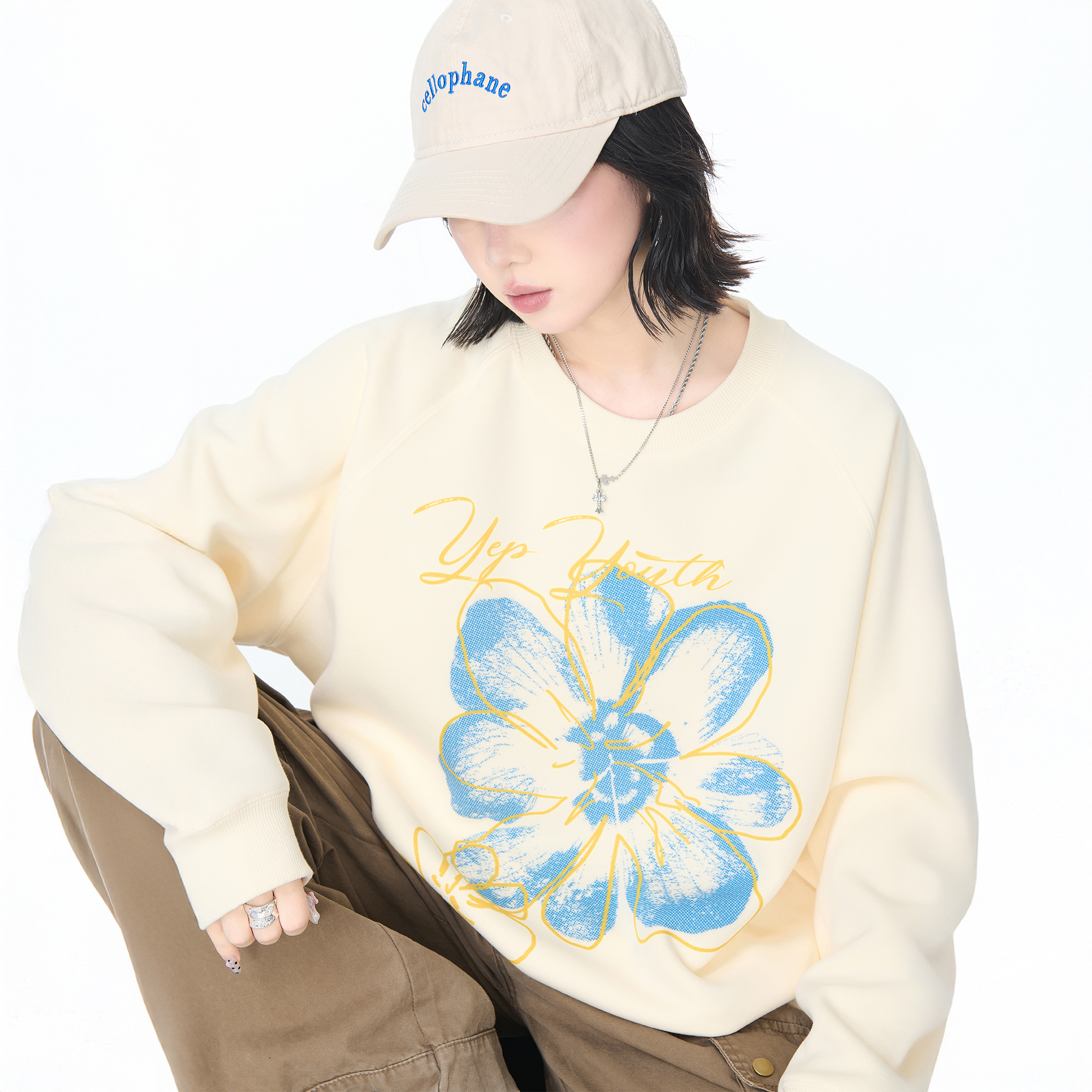 套头上衣 宽松休闲情侣款 YEP美式 街头风创意印花圆领卫衣女春秋季