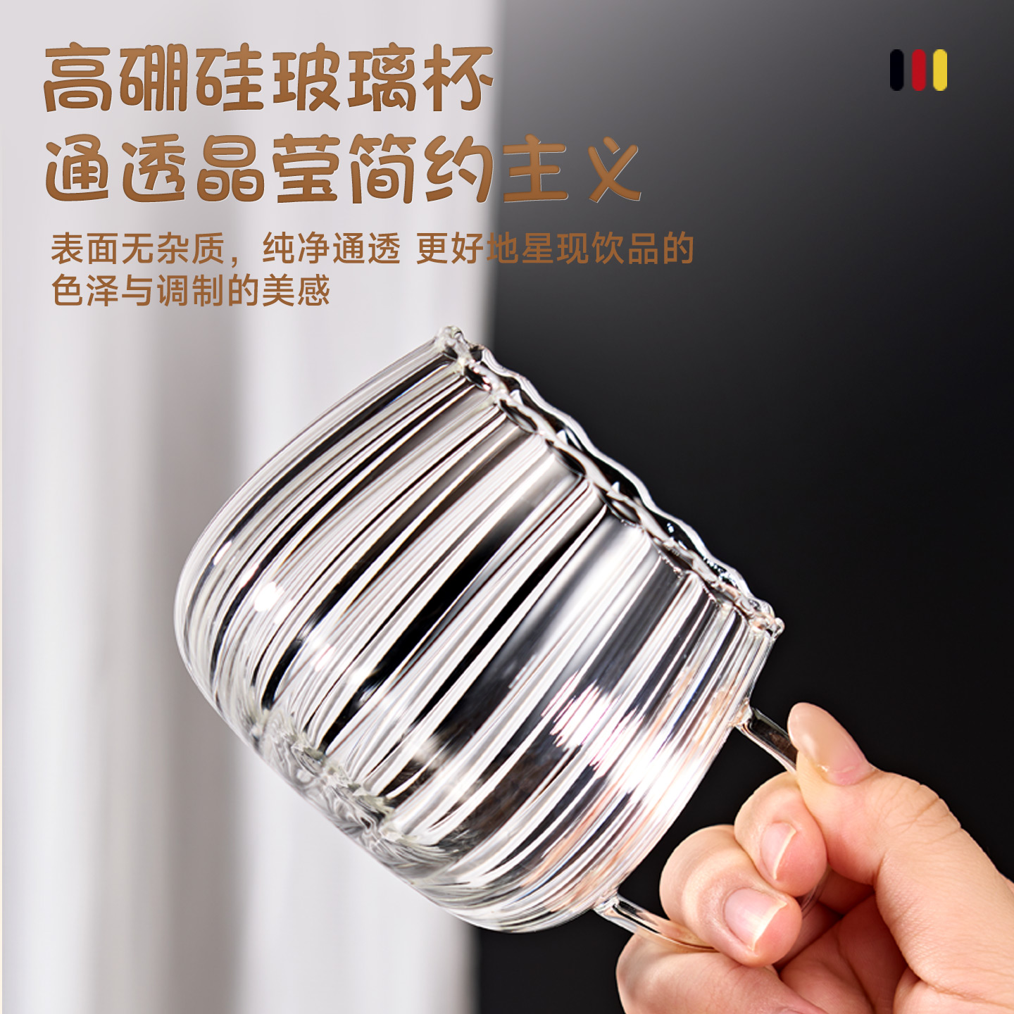 网红六角把手家用高级客厅喝水轻风牛奶杯咖啡果汁玻璃杯双层手柄