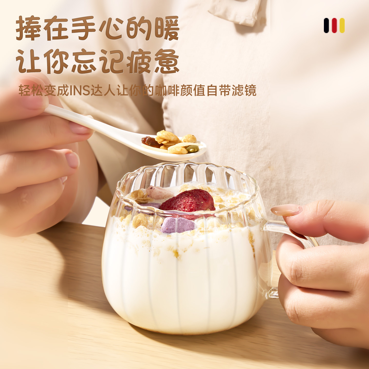 ins玻璃杯杯子卡通吸管杯勺刻度牛奶杯早餐杯情侣用微波炉便携