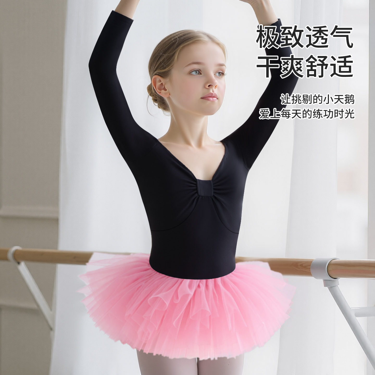 儿童舞蹈练功服女童秋季 连体幼儿跳舞衣形体服芭蕾舞裙 中国舞长袖