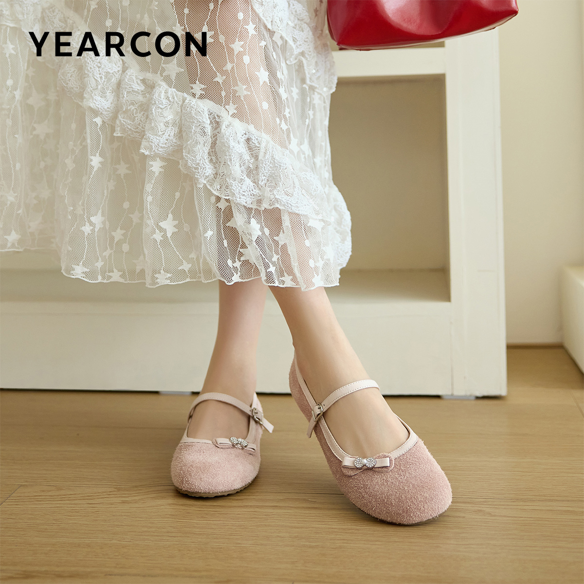 红色玛丽珍鞋 法式 百思图莫奈花园25秋新款 女单鞋 乔欣明星同款