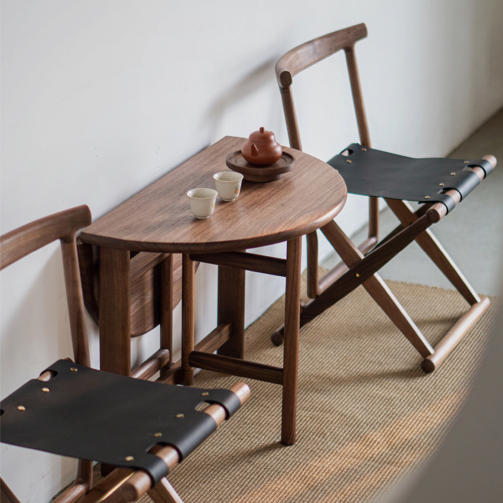 九间房靠背马扎北美黑胡桃木实木新中式 户外便携小凳子折叠凳
