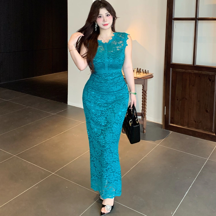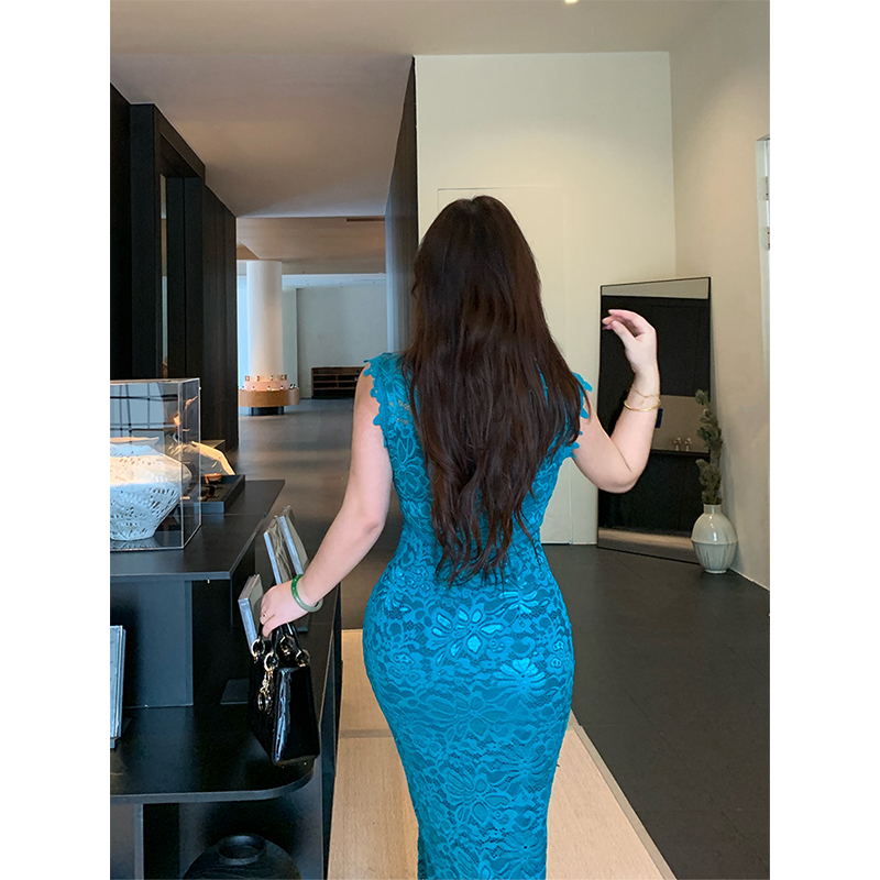 无袖 纯欲中长款 过雨窥荷 设计包臀连衣裙微胖显瘦长裙 babes