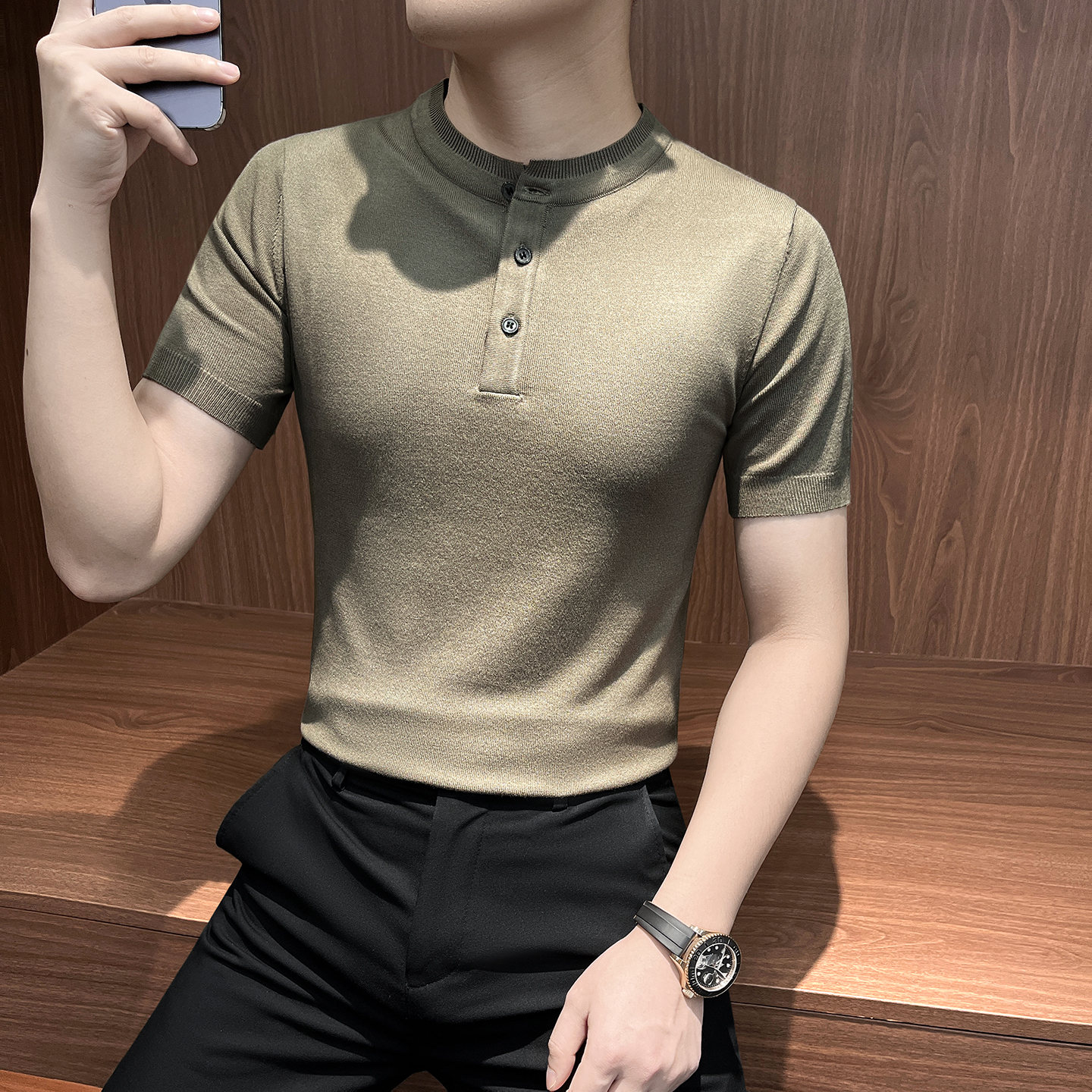 修身 夏季 男士 短袖 冰丝透气 亨利领针织高端polo衫 t恤2025新款 男款