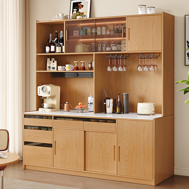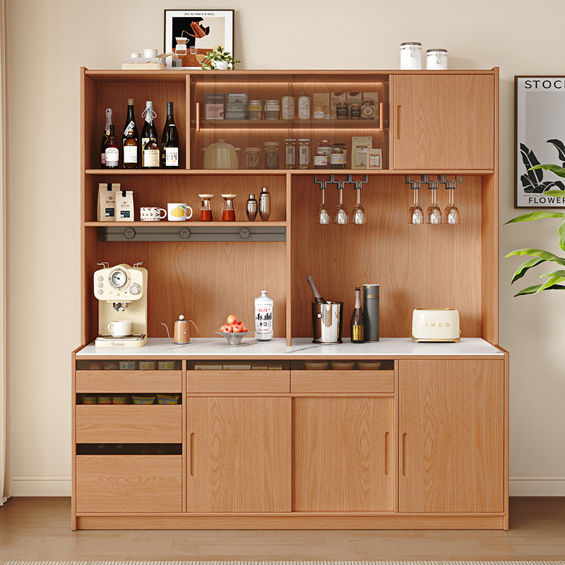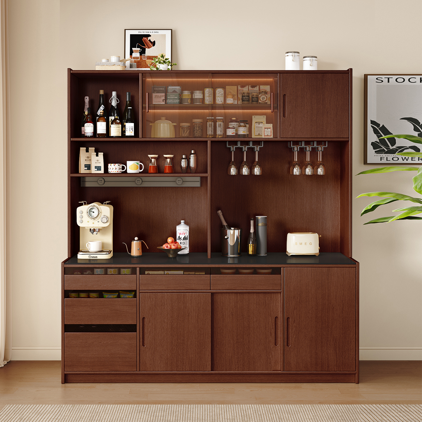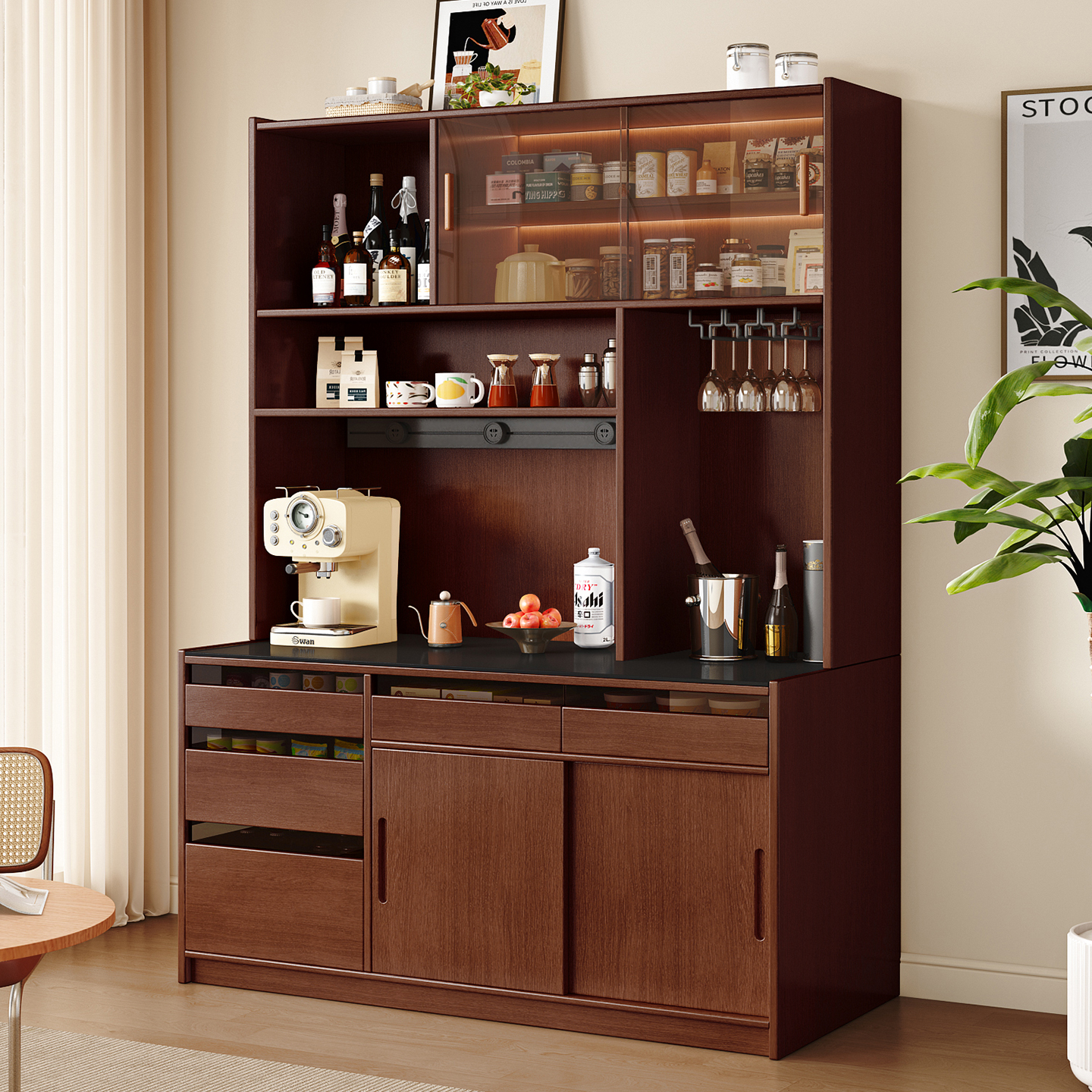 实木餐边柜靠墙一体储物柜子2025新款 客厅收纳置物柜咖啡机茶水柜