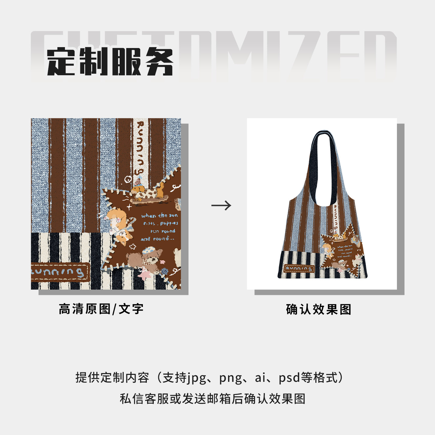 奥松原创条纹帆布包女2025新款 秋韩系慵懒风上班通勤高级感单肩袋