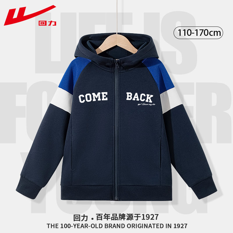 中大童撞色运动秋装 回力童装 宽松连帽开衫 儿童秋季 男童外套春秋款