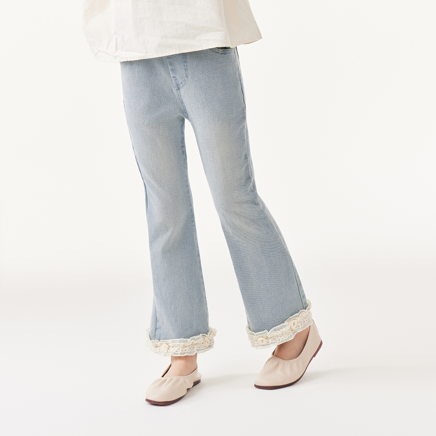 中大童洋气长裤 皇室童缘女童微喇裤 儿童花边牛仔裤 新款 子 2025秋季