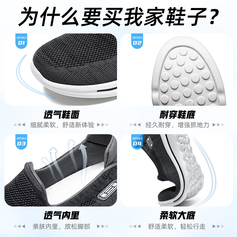 防滑鞋 软底舒适鞋 爸爸鞋 妈妈鞋 项格中老年鞋 透气飞织网面鞋 休闲鞋