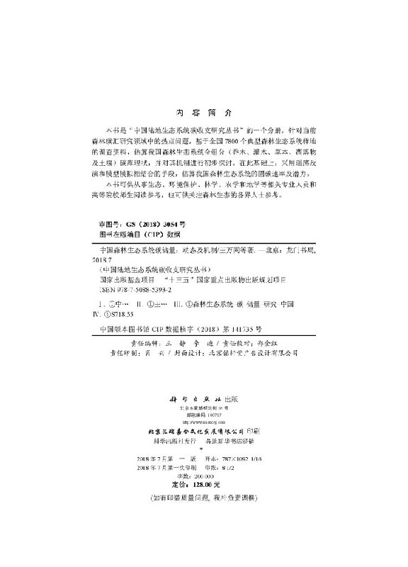 社书籍KX 中国森林生态系统碳储量——动态及机制9787508853932科学出版 书