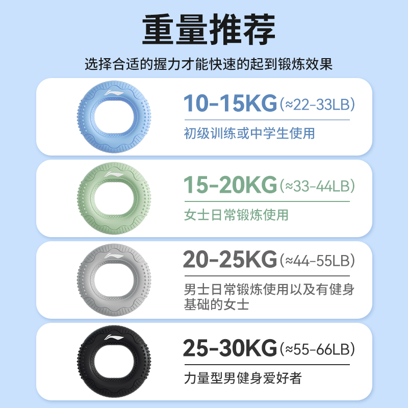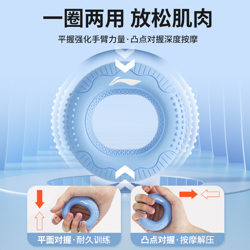 李宁硅胶握力圈男女练臂肌训练手劲器材五指力量儿童锻炼手力康复