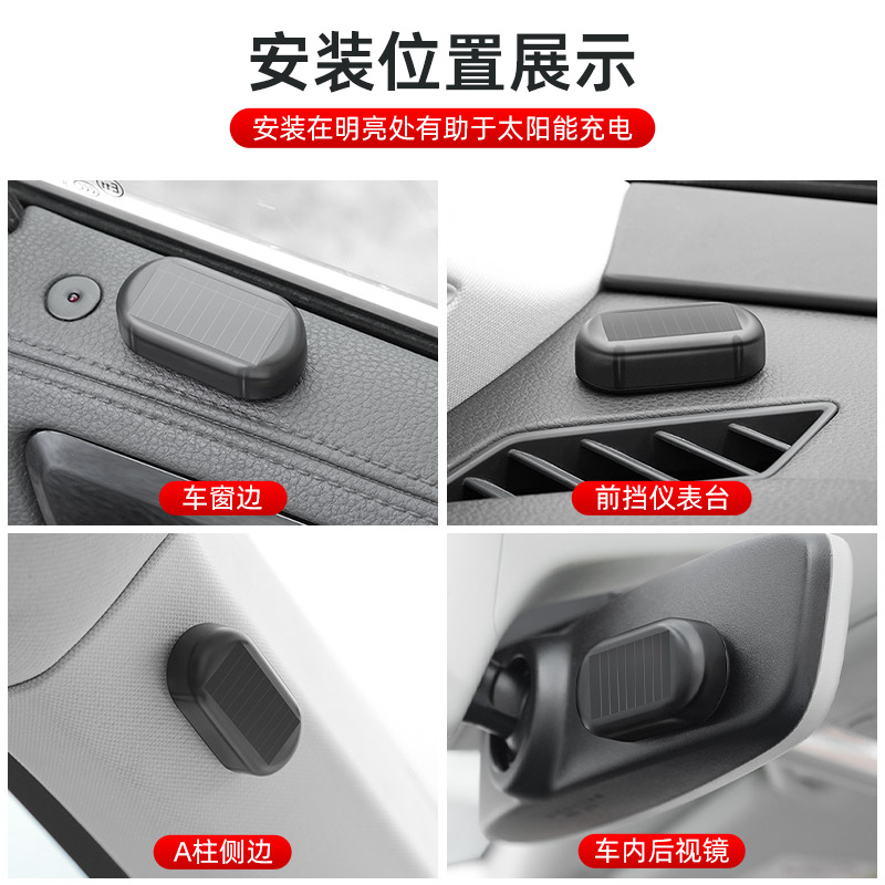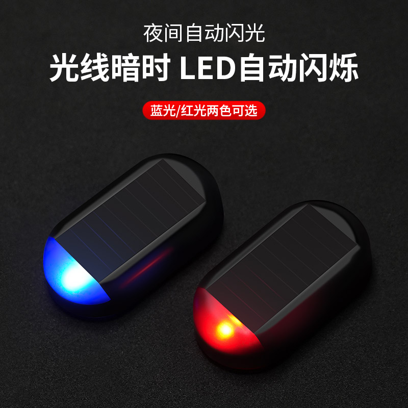 汽车太阳能警示防盗灯车内夜间爆闪灯免接线led呼吸灯车载闪光灯