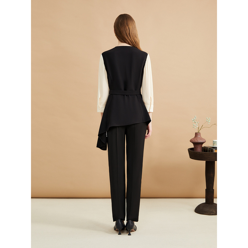 通勤撞色灯笼袖 法式 V领假两件上衣 秋季 YINER音儿专选女装