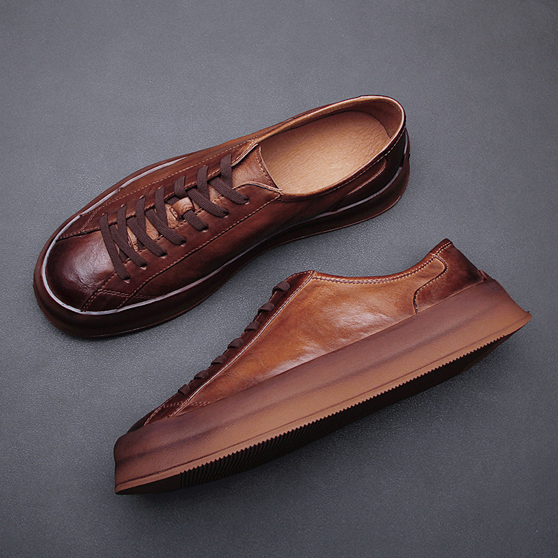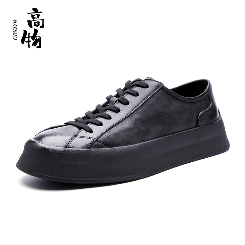 新款 牛皮百搭黑色皮鞋 潮鞋 男日系潮流复古休闲鞋 厚底板鞋 2025秋季