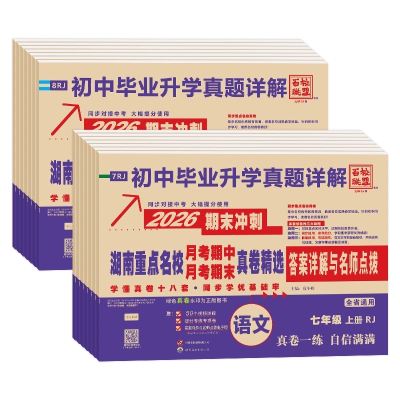 英语试卷人教湘教版 数学 湖南四大名校真题卷月考卷期中期末冲刺卷真卷初中789 湖南重点名校真卷精选七八年级上册下册语文 2026版