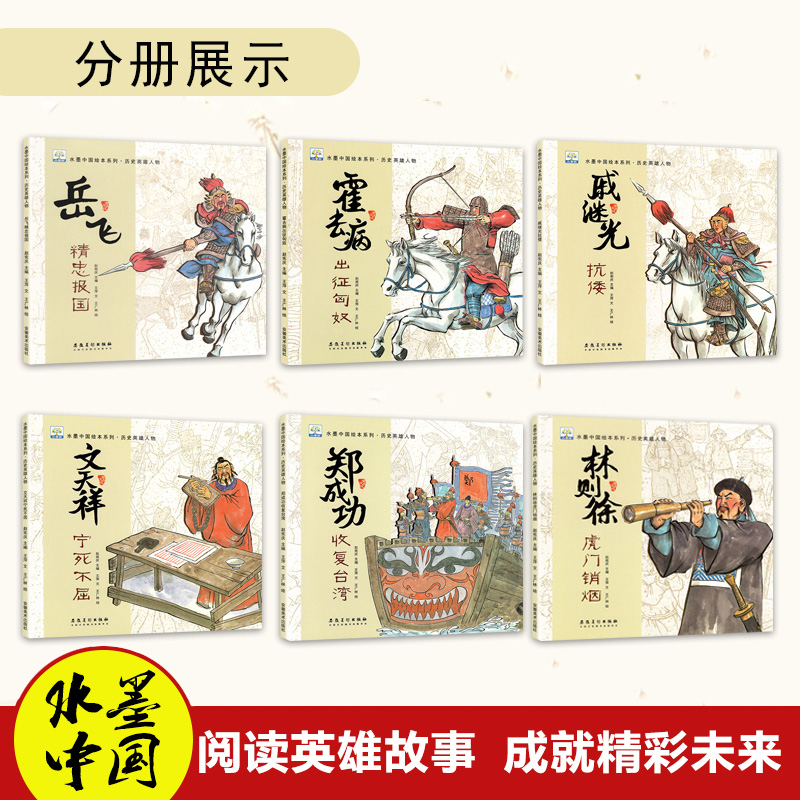 满江红岳飞精忠报国绘本中国古代名人故事历史英雄人物传记林则徐霍去病郑成功文天祥一年级课外阅读书3 8岁幼儿园宝宝儿童读物