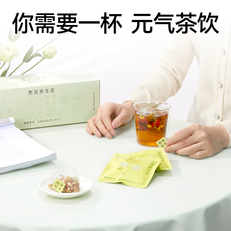 阿桂爷爷熬夜养甘茶菊花决明子茶肝牛蒡根桂花茉莉花代用茶泡水喝