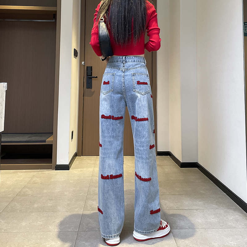 女冬40933286 100%棉复古高腰阔腿直筒牛仔裤 艾诺丝雅诗 建模裤