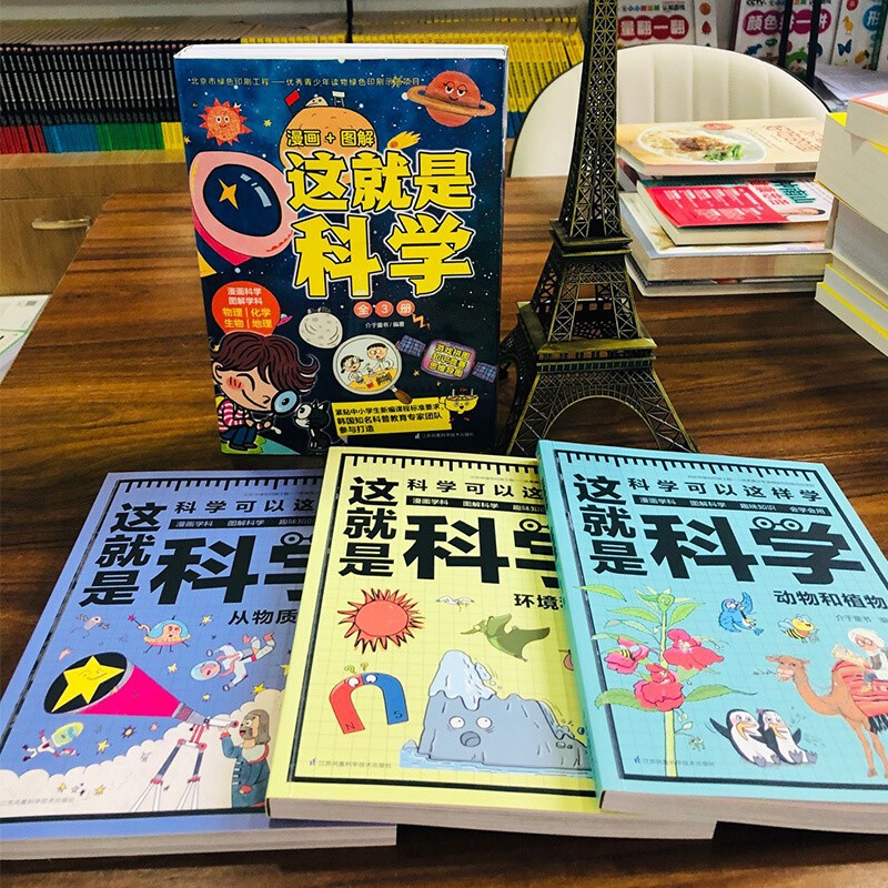 12岁科普读物课外阅读 理科启蒙书漫画图解学科知识大全动物植物宇宙环境能源地理生物化学物理中小学生5 这就是科学 全3册给孩子