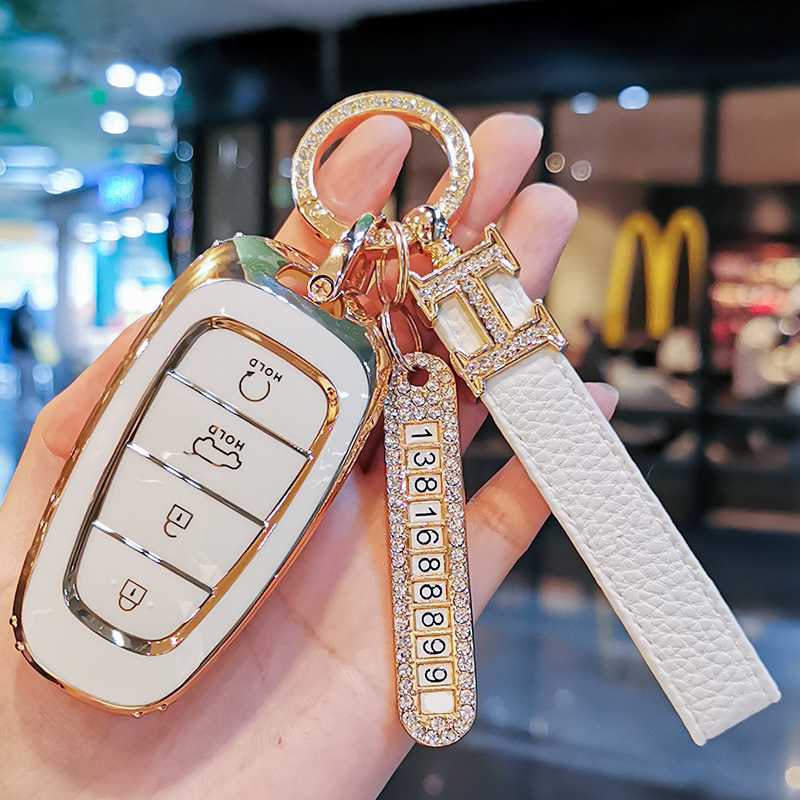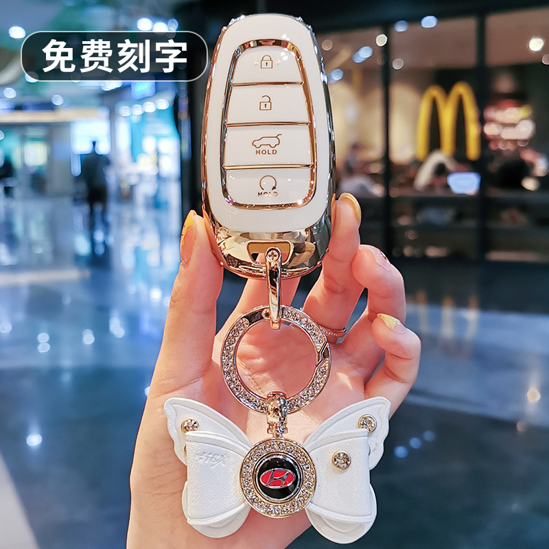 适用于北京现代途胜L钥匙套第五代21款 途胜L汽车高档包壳包扣男女