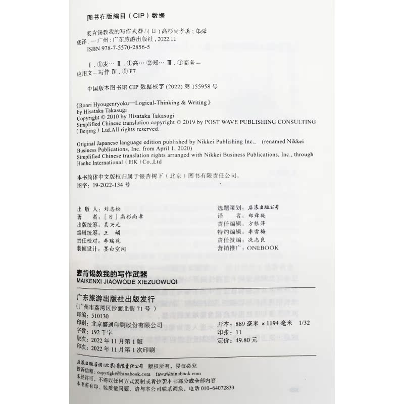 社正版 写作武器9787557028565广东旅游出版 现货 麦肯锡教我 新书