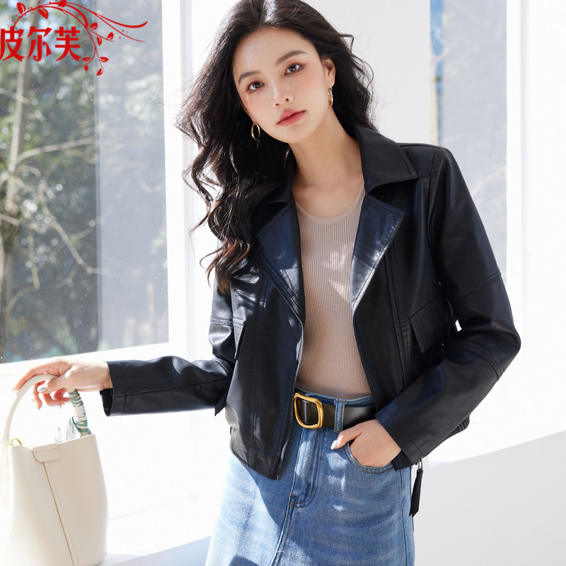 新款 秋水伊人复古机车皮衣女秋装 皮衣外套 皮夹克外套 沈月同款