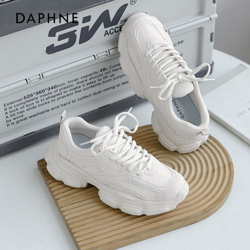 潮流跑步鞋 春秋厚底百搭休闲运动鞋 女 女2023爆款 达芙妮白色老爹鞋