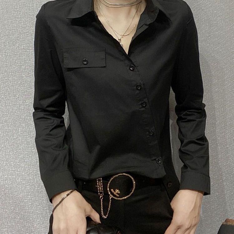 衬衫 气质通勤小衫 女春秋季 法式 上衣 2025年新款 欧货斜纽扣职业正装