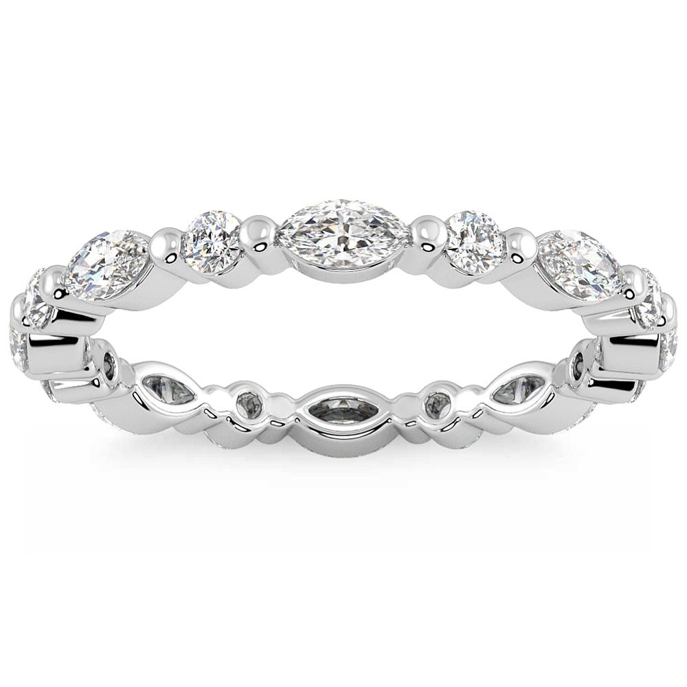 14k 克拉榄尖形和圆形钻石永恒婚礼可叠戴戒指 实 pompeii31 自营