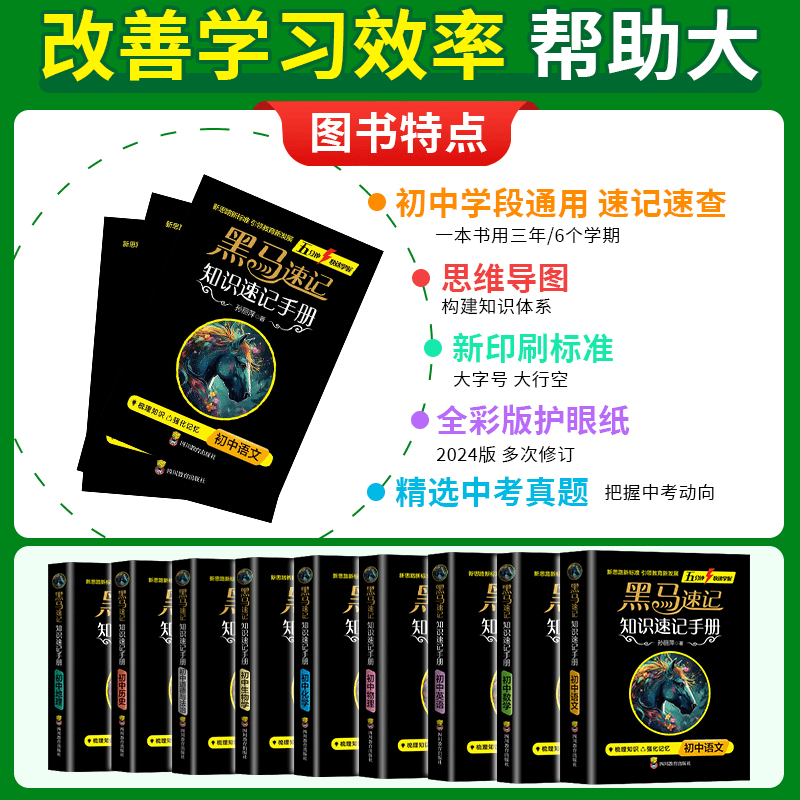 黑马速记知识速记手册全套9册2025初中便携全套语文英语数政史地