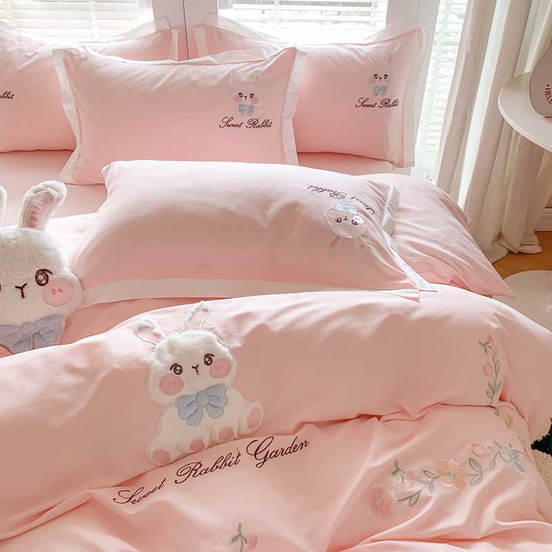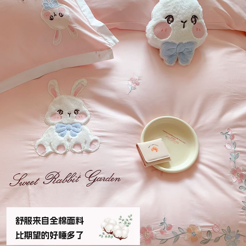 少女心纯棉四件套100全棉长绒棉床单被套可爱儿童床上用品三件套4